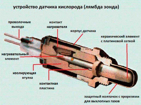 Конструкция зонда заключена в металлический корпус с резьбой и юбкой под гаечный ключ в нижней части. Некоторые модификации современных датчиков дополнительно оснащены электрическими нагревателями. Они необходимы для того, чтобы устройство начинало функционировать с первых секунд запуска двигателя.