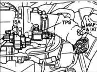 затем медленно откройте дроссельную заслонку и убедитесь, что сопротивление датчика плавно изменяется пропорционально открытию дроссельной заслонки, Если сопротивление датчика отличается от требуемого или изменяется скачкообразно, замените датчик положения дроссельной заслонки.