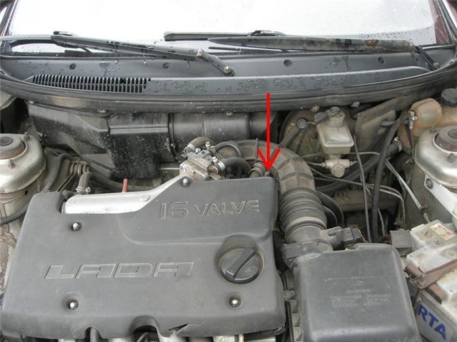 В соответствии со схемой подключения, на десятых моделях ВАЗ регулятор находится в подкапотном пространстве, неподалеку от выпускного коллектора.