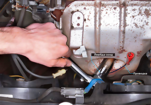 - Гаечным ключем выкручивается старый лямбда-зонд.